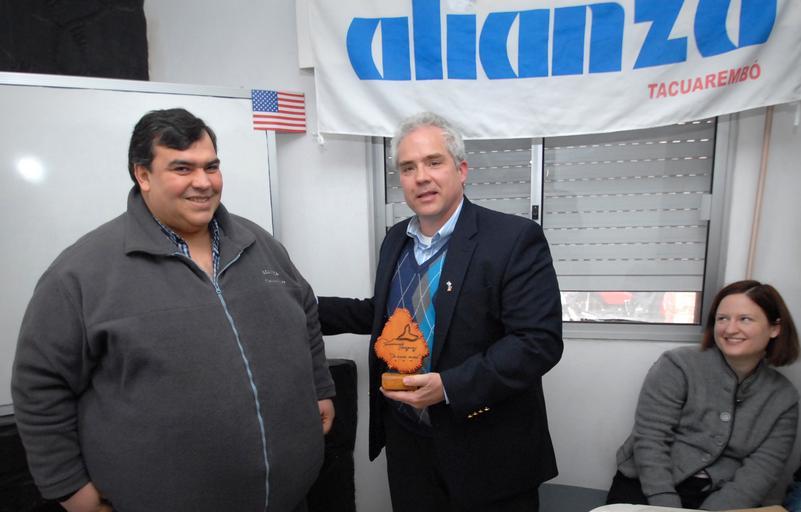 | Keywords: tacuarembo uruguay lloyd bnc alianza people groupshot El Encargado de Negocios de los EE.UU., Thomas Lloyd, realizó una visita a la Alianza Cultural Uruguay-Estados Unidos en Tacuarembó. Foto: Lloyd recibe un obsequio por parte del director de la Alianza, David Fontes. [U.S. Embassy photo by Vince Alongi / Copyright info] El Encargado de Negocios de los EE.UU., Thomas Lloyd, realizó una visita a la Alianza Cultural Uruguay-Estados Unidos en Tacuarembó. Foto: Lloyd recibe un obsequio por parte del director de la Alianza, David Fontes. [U.S. Embassy photo by Vince Alongi / Copyright info] |