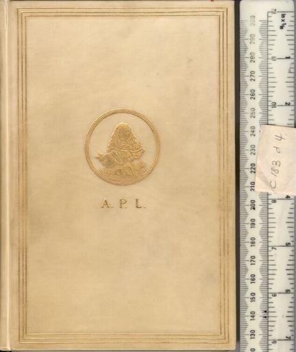 | Keywords: Alice's Adventures in Wonderland - Upper cover (c183d4).jpg Style Pictorial Publishers binding Centrepiece; Caption Upper cover; Colour White / cream; Edge Gilt exhibition history Decorative Technique Tooled in gold; Cover Material Parchment Signed Photographs of the binders at work can be found http //spitalfieldslife com/2014/03/19/monty-meths-bookbinders/ object history Text 1869; London; Unspecified object type Cc-zero place of creation Binding England place of discovery Newsletter of Designer Bookbinders no 169 Spring 2015 pp 7-9 contains an article by Rob Shepherd about Sangorski and Sutcliffe His book on the subject is to be published later in 2015 British Library image http //www bl uk/catalogues/bookbindings/LargeImage aspx RecordId 020-000002872 ImageId ImageId 41041 Copyright BL Alice's Adventures in Wonderland Uploaded with GWToolset Alice's Adventures in Wonderland - Upper cover c183d4 http //www webarchive org uk/bldatasets/bindings/8550_2 jpg 19th-century bookbinding Bookbinding British Library Bookbindings |