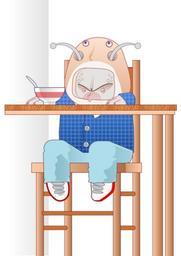 Keywords: alien baby eating high chair creature cartoon mutant sitting feeding