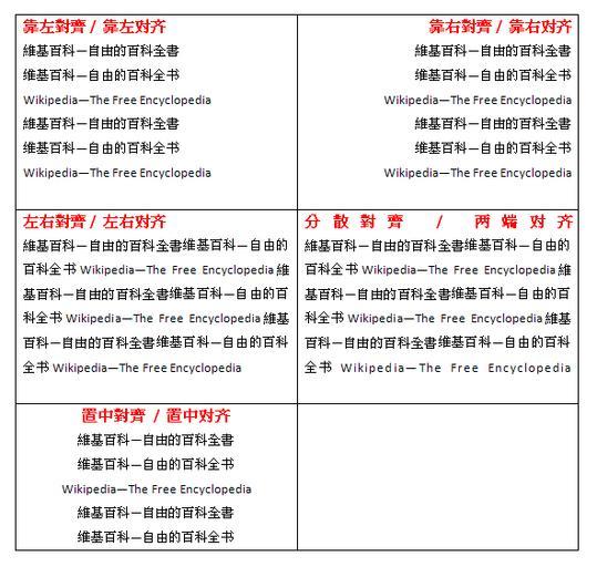 Keywords: Alignment.PNG Different kinds of alignments in typography This picture was self-made 2008-01-26 myself Check categories 2008 October 31 zh wikipedia 對齊 Printing