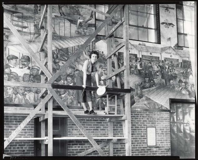 | Keywords: smithsonian institution smithsonianinstitution womensday mural painting woman artist portrait standing scaffolds aviation roosevelt field rooseveltfield long island longisland aviators wright brothers wrightbrothers black and white blackandwhite artist at work artistatwork building brick scaffolding window aline rhonie alinerhonie aviation mural aviationmural new york newyork woman painter womanpainter woman painting womanpainting mural on wall muralonwall lifestyle female artist femaleartist hanger art hangerart air defense program airdefenseprogram flying artist flyingartist smithsonian american art museum smithsonianamericanartmuseum garden city gardencity garden city, li gardencityli garden city, long island gardencitylongisland garden city, ny gardencityny earle l. ovington earlelovington earle ovington earleovington hangar f hangarf blackandwhite black and white Description: Aline H Rhonie was known as a flying artist for her work encouraging female participation in the air defense program and British War Relief. She learned mural painting from Diego Rivera and painted the large aviation themed fresco mural in Hangar F at Roosevelt Field. Creator/Photographer: Peter A. Juley & Son Medium: Black and white photographic print Dimensions: 8 in x 10 in Culture: American Date: c. 1935 Persistent URL: photography.si.edu/SearchImage.aspx?id=5814 Repository: Smithsonian American Art Museum, Photograph Archives Collection: Peter A. Juley & Son Collection - The Peter A. Juley & Son Collection is comprised of 127,000 black-and-white photographic negatives documenting the works of more than 11,000 American artists. Throughout its long history, from 1896 to 1975, the Juley firm served as the largest and most respected fine arts photography firm in New York. The Juley Collection, acquired by the Smithsonian American Art Museum in 1975, constitutes a unique visual record of American art sometimes providing the only photographic documentation of altered, damaged, or lost works. Included in the collection are over 4,700 photographic portraits of artists. Accession number: J0033661 Description: Aline H Rhonie was known as a flying artist for her work encouraging female participation in the air defense program and British War Relief. She learned mural painting from Diego Rivera and painted the large aviation themed fresco mural in Hangar F at Roosevelt Field. Creator/Photographer: Peter A. Juley & Son Medium: Black and white photographic print Dimensions: 8 in x 10 in Culture: American Date: c. 1935 Persistent URL: photography.si.edu/SearchImage.aspx?id=5814 Repository: Smithsonian American Art Museum, Photograph Archives Collection: Peter A. Juley & Son Collection - The Peter A. Juley & Son Collection is comprised of 127,000 black-and-white photographic negatives documenting the works of more than 11,000 American artists. Throughout its long history, from 1896 to 1975, the Juley firm served as the largest and most respected fine arts photography firm in New York. The Juley Collection, acquired by the Smithsonian American Art Museum in 1975, constitutes a unique visual record of American art sometimes providing the only photographic documentation of altered, damaged, or lost works. Included in the collection are over 4,700 photographic portraits of artists. Accession number: J0033661 |