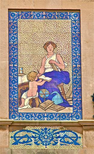 Keywords: Al·legoria de la ciència.jpg Can Barceló és un edifici premodernista obra del mestre Bartomeu Ferrà Decorada con ceràmiques policromades de la antigua fàbrica textil mallorquina La Roqueta de Bartomeu Barceló Mir firmada per Vicenç Llorenç Representen estilitzadas al·legorías de les artes de la artesania i de la economía artesania textil ceràmica ciència arquitectura música pintura i comerç Can Barceló is a pre-modernist work by Bartomeu Ferrà builidng master Decorated with tiles of the antique mallorquean textile fabric La Roqueta owned by de Bartomeu Barceló Mir designed by Vicenç Llorenç Represent stylized allegory of the arts crafts and the economy textile arts pottery science architecture music painting and trade Place Lloc/Place Plaça Quadrado Palma Mallorca Per / By Chixoy Data / Date 2010-12-06 11 08 54 Font Vaig fer la foto jo mateix Source Photo taken by uploader 39 34 10 6 N 2 39 15 1 E Links 'Link to www geolocation ws http //www geolocation ws/v/P/12404961/faana-premodernista-plaa-den-quadrado /en Can Barceló |
