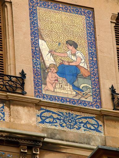 Keywords: Al·legoria de l'arquitectura.jpg Can Barceló és un edifici premodernista obra del mestre Bartomeu Ferrà Decorada con ceràmiques policromades de la antigua fàbrica textil mallorquina La Roqueta de Bartomeu Barceló Mir firmada per Vicenç Llorenç Representen estilitzadas al·legorías de les artes de la artesania i de la economía artesania textil ceràmica ciència arquitectura música pintura i comerç Can Barceló is a pre-modernist work by Bartomeu Ferrà builidng master Decorated with tiles of the antique mallorquean textile fabric La Roqueta owned by de Bartomeu Barceló Mir designed by Vicenç Llorenç Represent stylized allegory of the arts crafts and the economy textile arts pottery science architecture music painting and trade Place Lloc/Place Plaça Quadrado Palma Mallorca Per / By Chixoy Data / Date 2010-12-06 11 08 54 Font Vaig fer la foto jo mateix Source Photo taken by uploader 39 34 10 6 N 2 39 15 1 E Links 'Link to www geolocation ws http //www geolocation ws/v/P/12404961/faana-premodernista-plaa-den-quadrado /en Can Barceló |