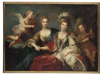| Keywords: Allegorical portrait of Marie Leczinska and Marie Josèphe of Saxony, follower of Michel van Loo.jpg Marie Leszczyńska Queen of France and her daughter in law Maria Josepha of Saxony Dauphine of France c 1765 Oil on canvas cm 121 3 164 5 unknown http //forum alexanderpalace org/index php topic 6481 75;topicseen Christie's online 4485637 other versions PD-old-100 DEFAULTSORT 1765c; Bourbon family Louis-Michel van Loo 18th-century portrait paintings location missing Portraits of Marie Leszczyńska Marie Josèphe of Saxony House of Bourbon 1760s portrait paintings from France 18th-century allegorical paintings 18th-century family portraits of royalty 18th-century oil portraits of sitting women at three-quarter length Allegorical portraits Ermine clothing in art Military helmets in portraits Painting frames Paintings by Louis-Michel van Loo with fur Portraits as Minerva Portraits with 2 persons Portraits with putti |