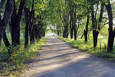 Keywords: alley basswood river track stroll few people evening sunny shadow greens square park vista