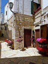Keywords: alley flowers narrow mediterranean entrance residential urban village colorful old