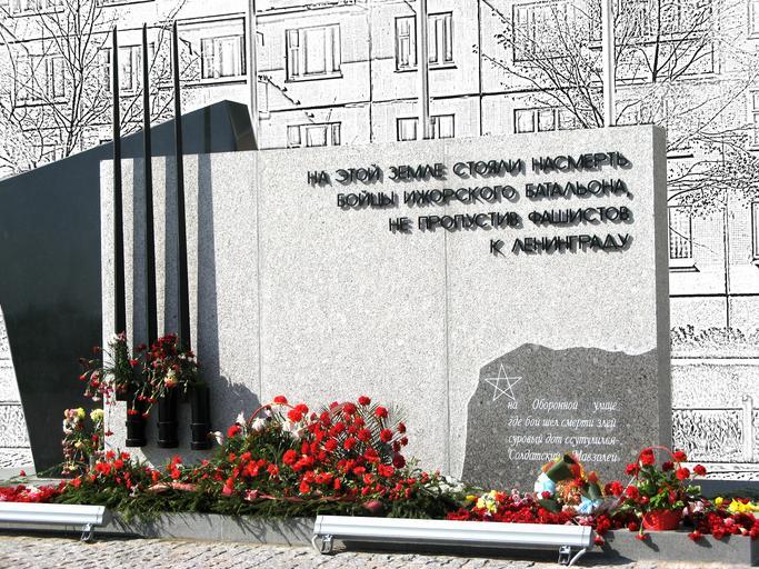 | Keywords: Alley of glory flowers flags (view to north) bw photocopy.jpg  Аллея Славы Памятник с текстом  А ЭТОЙ ЗЕ ЛЕ СТОЯЛИ  АС ЕРТЬ БОЙЦЫ ИЖОРСКОГО БАТАЛЬО А  Е ПРОПУСТИВ ФАШИСТОВ К ЛЕ И ГРАДУ на Обо онной улице где бой шел сме ти злей су овый дот ссутулился - Солдатский  авзолей Колпино улица Обо онная Alley of glory The monument with the text THE SOLDIERS OF THE IZHORSKY BATTALION FIGHT TO THE BITTER END AT THIS LAND THEY DID NOT LET PASS FASCISTS TO THE LENINGRAD At Oboronnaya street the battle was worse than death the rough pillbox bends there it's a soldier's mausoleum Kolpino Russia Oboronnaya street Photocopy filter was used own 2009-05-13 User AKA_MBG/Info AKA MBG 120px left thumb More color version 59 43 51 544128 N 30 36 33 5556 E source exif_heading 339 78 Alley of glory Kolpino |