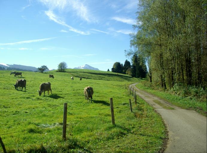 Keywords: allgäu away nature ruins green blue sky grass meadow cows
