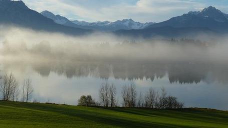 Keywords: allgäu lake forggensee autumn fog tip of the miter füssen panorama water reflection