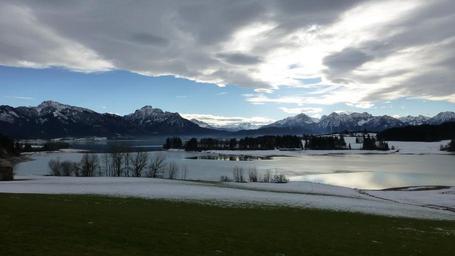 Keywords: allgäu lake forggensee winter snow ice weather panorama sun mountains