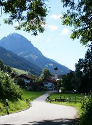 Keywords: allgäu schöllang village alpine mountains landscape bergdorf holiday church church tower rubihorn mountain landscape oberallgäu summer steeple idyll