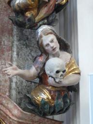 | Keywords: Allmannshofen Kloster holzen 0013.JPG Kloster Holzen ist ein ehemaliges Kloster der Benediktinerinnen in Allmannshofen in Bayern in der Diözese Augsburg <br> Decorations above the Altar of Saint Anne Holzen Abbey is a Benedictine abbey near the village of Allmannshofen in Bavaria approximately 15 kilometers south of Donauwörth Germany Own Mattana 2009-04-08 Images by Mattana-Allmannshofen Germany Klosterkirche St Johannes der Täufer Holzen Statues of putti in Bavaria | ||||