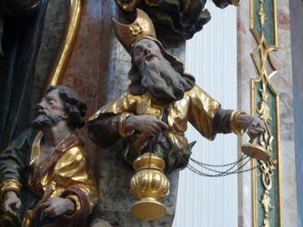 | Keywords: Allmannshofen Kloster holzen 0019.JPG Kloster Holzen ist ein ehemaliges Kloster der Benediktinerinnen in Allmannshofen in Bayern in der Diözese Augsburg Decorations on the Altar of Madonna and Child Holzen Abbey is a Benedictine abbey near the village of Allmannshofen in Bavaria Germany Own Mattana 2009-04-08 Images by Mattana-Allmannshofen Germany Baroque statues of Christian saints in Swabia administrative region Klosterkirche St Johannes der Täufer Holzen | ||||