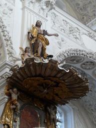 | Keywords: Allmannshofen Kloster holzen 0029.JPG Kloster Holzen ist ein ehemaliges Kloster der Benediktinerinnen in Allmannshofen in Bayern in der Diözese Augsburg <br> Decorations above the Baroque pulpit Holzen Abbey is a Benedictine abbey near the village of Allmannshofen in Bavaria Germany Own Mattana 2009-04-08 Images by Mattana-Allmannshofen Germany Kloster Holzen pulpit Abat-voix in Bavaria Allmannshofen | ||||