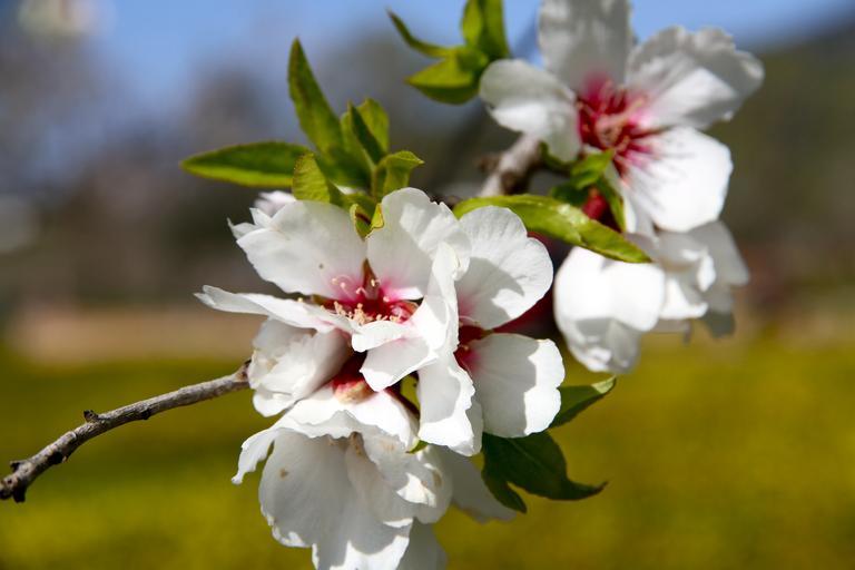 Keywords: almond tree flower field