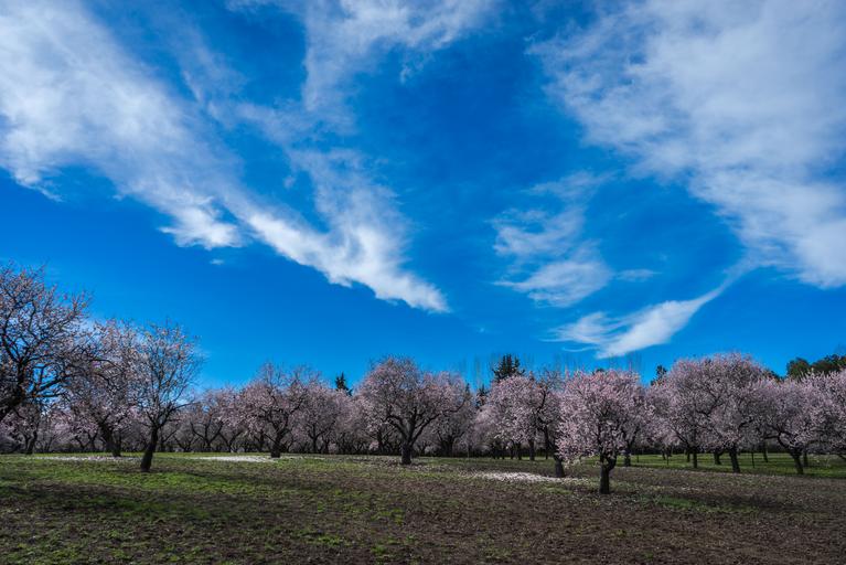 Keywords: almond tree spring park flower bloom flowers nature garden plant colors green tree outdoors trees leaves colorful perspective sky beautiful peaceful light landscape