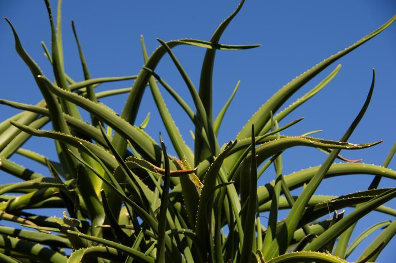 Keywords: aloe vera succulent green spikey garden blue sky