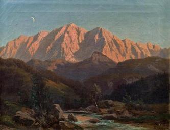 | Keywords: Alois Kirnig - Blick auf die Zugspitze vom Einfluss der Ammer in den Ammersee (1889).jpg Artwork Creator Alois Kirnig 1889 oil canvas cm 31 42 object history credit line Kirnig 1889 ~ lower right signature / date accession number http //www arcadja com/auctions/de/private/kirnig_alois/kunstwerken/56597/0/ im Kinsky Kunst Auktionen 2011 03 09 Lot Nr 327 via ARCADJA auction results PD-old-100-1923 1911 Alois Kirnig Zugspitze in art Paintings of the German Alps 19th-century mountain paintings 1880s landscape paintings Landscape paintings of Bavaria Images from im Kinsky Kunstauktionen |
