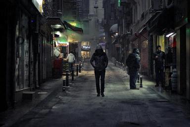 Keywords: alone walking night people city street lonely stranger gloomy snow man dark