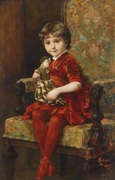 | Keywords: Aloys Hannes Schramm Mädchen mit Puppe 1885.jpg Artwork creator Alois Hans Schram ligiert signature XII/1885 date 1885-12 Oil on canvas cm 100 64 5 exhibition history offered at Dorotheum auction house Vienna 2011 http //www dorotheum com other versions PD-old-70 DEFAULTSORT 1885; unknown girl Alois Hans Schram 19th-century portrait paintings location missing Portraits of unknown children 1885 oil on canvas paintings Portrait 1885 portrait paintings 19th-century oil portraits of girls at full length Armchairs in portrait paintings Girls looking at viewer in art Images from Dorotheum Portrait paintings of sitting girls Portraits of girls with dolls Red clothing in art female Velvet clothing in art |