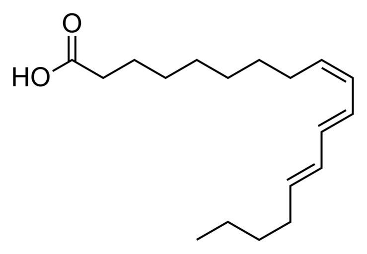 | Keywords: Alpha-eleostearic acid.svg Structural diagram of α-eleostearic acid 9Z 11E 13E -octadeca-9 11 13-trienoic acid Created using http //www acdlabs com/download/chemsk html ACD/ChemSketch 10 0 and Inkscape Own work after ChemSpider http //www chemspider com/Chemical-Structure 4444560 html 4444560 2009-04-09 Fvasconcellos Polyunsaturated fatty acids |