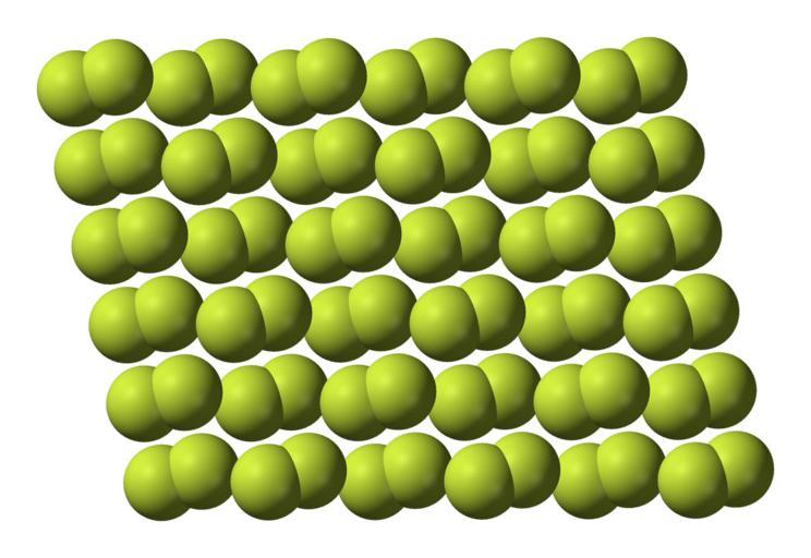 Keywords: Alpha-fluorine-3D-vdW-B.png Space-filling model of part of the crystal structure of α-fluorine Crystal structure data from http //dx doi org/10 1063/1 1670323 J Chem Phys 49 1902 1968 Image generated in http //accelrys com/products/discovery-studio/visualization/discovery-studio-visualizer html Accelrys DS Visualizer Own 2008-06-11 Ben Mills Benjah-bmm27 Images by Ben Mills Space-filling models Alpha-fluorine |