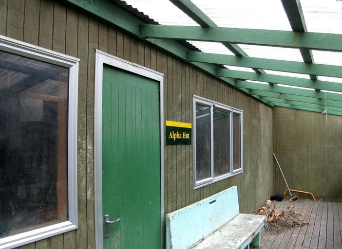 Keywords: Alpha Hut 3.jpg Entrance door to Alpha Hut W Tararua Range 2013-04-04 own Sarang Alpha Hut