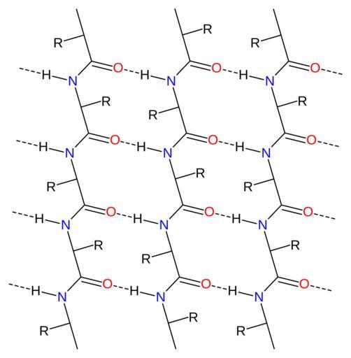 | Keywords: Alpha sheet bonding schematic-color.svg Schematic diagram of hydrogen bonding in the alpha sheet protein structural motif Created using http //www acdlabs com/download/chemsk html ACD/ChemSketch 10 0 and Inkscape ;Legend red w Oxygen atoms blue w Nitrogen atoms Own work after Pauling L Corey R B 1951 The pleated sheet a new layer configuration of polypeptide chains Proc Natl Acad Sci USA 37 251 “6 PMID 14834147 <br>Created by uploader upon request by Opabinia regalis 2007-01-20 Fvasconcellos Peptides Protein folding |