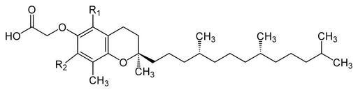 | Keywords: Alpha TEA.svg en alpha TEA α-TEA; alpha-TEA; RRR-α-tocopherol ether-linked acetic acid; 2 5 7 8-tetramethyl-2R- 4R 8R 12-trimethyltridecyl chroman-6-yloxy acetic acid;<br> α R<sup>1</sup> R<sup>2</sup> CH<sub>3</sub>; β R<sup>1</sup> CH<sub>3</sub> R<sup>2</sup> H; γ R<sup>1</sup> H R<sup>2</sup> CH<sub>3</sub>; δ R<sup>1</sup> R<sup>2</sup> H de äh siehe oben Own Yikrazuul 2008-11-14 Vitamin E | ||||