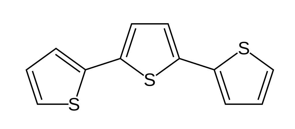 Keywords: Alpha-Terthiophene.svg Structural diagram of 2 2' 5' 2<nowiki></nowiki>-Terthiophene Created using http //www acdlabs com/download/chemsk html ACD/ChemSketch 10 0 and Inkscape Own 2007-01-26 Fvasconcellos Thiophenes