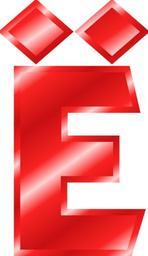 Keywords: alphabet e umlaut mutated vowel abc letter alphabetic character red glossy