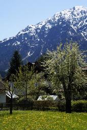 Keywords: alpine allgäu spring blossom bloom blossom allgäu alps mountains panorama landscape mountain landscape nature mountain meadow dandelion meadow dandelion apple trees mountain snow