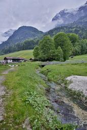 Keywords: alpine mountain landscape mountain landscape mountains hut river bavaria germany berchtesgaden hintersee alpenhof