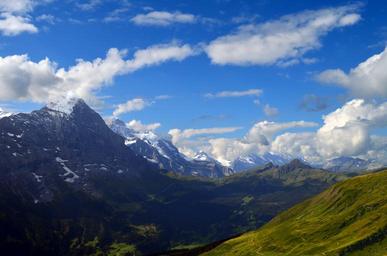 Keywords: alpine panorama eiger monk virgin meadow rock landscape mountain landscape hiking first grindelwald snow mountain range