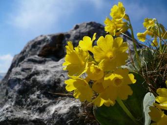 Keywords: alpine primrose flower primrose yellow plant nature close blossom bloom alpine mountains summer