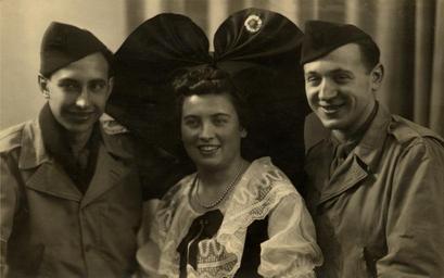 | Keywords: Alsacienne en costume traditionnel filleuls de guerre 1944.jpg fr Jeune fille alsacienne en costume traditionnel avec ses filleuls de guerre 1944 2011-08-24 own Ctruongngoc PD-old Hörnerkappe 1944 in France People of Alsace Traditional costumes of Alsace |