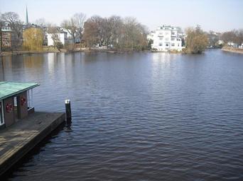 Keywords: Alster Fluß Blick von der Krugkoppelbrücke nach Norden.JPG de Alster Fluss Blick über die Krugkoppelbrücke nach Norden own Graf zu Pappenheim Alster River Streek Hamburg-Harvestehude