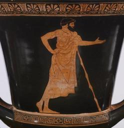 | Keywords: Altamura Painter - Red-Figure Calyx Krater - Walters 48262 - Side B Detail.jpg The scene on this krater depicts another milestone in the life of a young man At the culmination of years of training a warrior stands beside the family altar preparing to leave for war He wears a short tunic under a cuirass breastplate and holds his spear in his left hand A young woman on the right readies his shield and stretches out her hand to pass his helmet across the altar A krater is a large wide-mouth vessel used for mixing water and wine; if the handles are in the low position seen here it is called a calyx krater between 470 460 BC Classical terracotta cm 35 9 35 8 accession number 48 262 8994 Thomas B Clarke New York until 1925 Thomas B Clarke Sale American Art Gallery New York January 7-10 1925 no 625 Henry Walters city Baltimore Walters Art Museum Henry Walters Acquired by Henry Walters 1925 Heroes Mortals and Myths in Ancient Greece The Walters Art Museum Baltimore; Frist Center for the Visual Arts Nashville; San Diego Museum Of Art San Diego; Alexander S Onassis Public Benefit Foundation USA New York 2009-2011 place of origin Athens Greece Walters Art Museum license Ancient Greek red-figure pottery in the Walters Art Museum Altamura Painter Media contributed by the Walters Art Museum needs category review Media contributed by the Walters Art Museum needs artist update Costume in ancient Greece |
