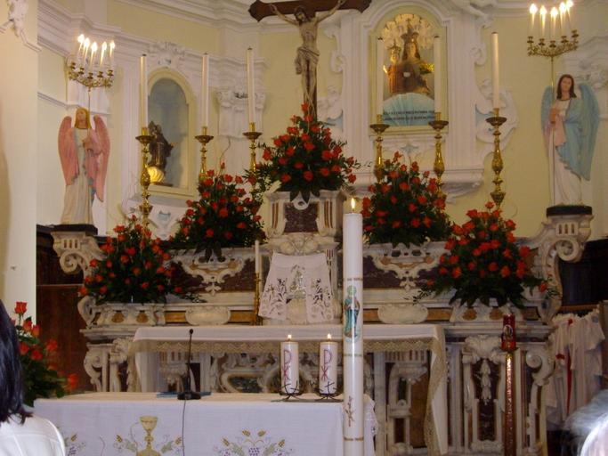 | Keywords: Altare della chiesa della Madonna della Neve jpg.JPG it Interno della chiesa della Madonna della Neve L'Altare Own Tdeluca60 14/032009 Celle di Bulgheria Interno della chiesa la chiesa della Madonna della Neve con l'altare del 1700 molto catteristico realizzato in marmo di vivi colori bianco rosso arancione turchino e verde scuro Dietro l ™abside con semicupola e pareti poligonali tutte decorate di stucchi e fregi di stile neoclassico Madonna della Neve Celle di Bulgheria Altars of Our Lady of the Snow |