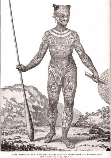 | Keywords: AlterKrieger-K.v.d.Steinen.jpg Tätowierter Krieger der Marquesas Inseln Bildunterschrift Abb 84 ALTER KRIEGER LANGSDORFFS BLUETE DER SCHACHORNAMENTIK UND KUPPENMUSTER 1804 Kupfer X 8/5 d Orig Vgl S 141 Karl von den Steinen Die Marquesaner und ihre Kunst Studien über die Entwicklung primitiver Südseeornamentik nach eigenen Reiseergebnissen und dem Material der Museen Band 1 von 3 TATAUIERUNGEN S 142; Reimer Berlin 1925 1925 Bislang unbekannt Die Vorlage wird mit Georg Heinrich von Langsdorff 1804 zitiert und seitenverkehrt sowie beschnitten abgebildet Das zitierte Buch Langsdorffs erschien 1813 als Urheber der dortigen Gravur scheint Wilhelm Gottlieb Tilesius von Tilenau auf s Andere Versionen PD-old-100 thumb Vorlage frühestens 1804 spätestens 1813 Original upload log de wikipedia Emha http //tools wikimedia de/~magnus/commonshelper php CommonsHelper de wikipedia AlterKrieger-K v d Steinen jpg 2012-03-17 15 20 JanManu 1571×2224× 3888990 bytes <nowiki> Information Tätowierter Krieger der Marquesas Inseln Original Bildunterschrift Abb 84 ALTER KRIEGER I ANGSDORFFS BLUETE DER SCHACHORNAMENTIK UND KUPPENMUSTER 1804 Kupfer X 8/5 d Orig Vgl S 141 Karl vo ¦</nowiki> Nuku Hiva Tattooing in art Marquesas Islands Tattoos in Polynesia Men with tattoos Men with face tattoos v d Steinen quoting third-party work |