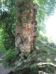 | Keywords: Alūksne Castle eastern wall cross-section.jpg en Alūksne Castle cross-section of the Eastern wall One can clearly see that while both surfaces of the wall are evenly made of boulders the interior was built of rubble and boulders own Otoomet 2010-07-21 Alūksne Castle |