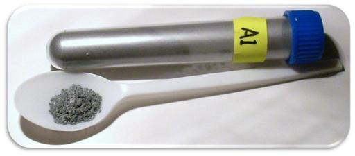 Keywords: Aluminum samples.png en Aluminium - Al cs Práškový hliník - Al own Ondřej Mangl 7 8 2011 Aluminium