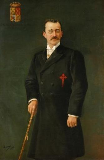 Keywords: Álvaro de Figueroa y Torres, conde de Romanones.jpg Retrato del político liberal español Álvaro de Figueroa y Torres 1863-1950 que fue más conocido por su título de conde de Romanones y que llegó a ser presidente del Consejo de Ministros de España en tres ocasiones durante el reinado de Alfonso XIII de España En el retrato aparece luciendo sobre su abrigo la cruz roja de caballero de la Orden de Santiago 1898 oil on canvas Size cm 92 5 140 Institution Ayuntamiento de Madrid Colección Municipal Dispersa y Ermita de San Antonio de la Florida Madrid http //ceres mcu es/pages/Main accession number 00095 035 http //ceres mcu es/pages/Main PD-old-100 Alvaro de Figueroa y Torres Manuel Arroyo y Lorenzo Galería de retratos de alcaldes del Ayuntamiento de Madrid 1898 portrait paintings from Spain |