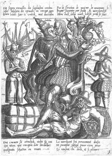 | Keywords: Alva's opdracht in de Nederlanden 003.jpg Terwijl Alva vrijt met de hoer van Babylon raakt de economie van het land in verval ca 1572 uit de serie Alva's opdracht in de Nederlanden en de gevolgen van zijn tirannie 1572 <ref>https //www rijksmuseum nl/collectie/RP-P-OB-79 011 Terwijl Alva vrijt met de hoer van Babylon raakt de economie van het land in verval ca 1572 - Rijksmuseum Amsterdam - Nationaal Museum voor Kunst en Geschiedenis </ref> Alternate titles Spotprent op Alva en de Katholieke kerk <ref>De Bruyn 2001; ISBN 90-70706-35-0 p 83 </ref> engraving institution Rijksmuseum Frederik Muller Historieplaten RP-P-OB-79 011 Die scepen veruallen die sciplieden connen / Nyet behelpen die copman en vercopt geen / Waer babels hoer is vrolick met ducdalba babilon alba Den cramer sit armelÿck neder hÿ can / sÿn ware nyet vercopen doer ducdalbas / onclÿnen schatten en rouen 3 object history ProvenanceEvent 1881 purchase Rijksmuseum Amsterdam www rijksmuseum nl http //www rijksmuseum nl/ lang en Home https //www rijksmuseum nl/collectie/RP-P-OB-79 011 Info https //www rijksmuseum nl/collectie/RP-P-OB-79 011 Pic Creator Anonymous 1572 Color information discarded Brightness/contrast adjusted PD-old-100 LangSwitch References Noten <references /> Eighty Years' War 1572 Propaganda of the Netherlands Fernando Álvarez de Toledo 3rd Duke of Alba Whore of Babylon Pedlars in art Dutch 16th-century prints in the Rijksmuseum Amsterdam Anonymous Flemish prints in the Rijksmuseum Amsterdam Anonymous 16th-century engravings 1572 in the Netherlands |