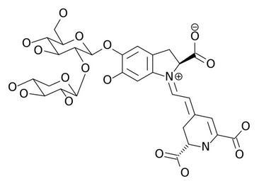 Keywords: Amaranthin.svg Amaranthin the purple dye in Amaranthaceae flowers and leaves created with bkchem+inkscape 2006-08-01 own assumed Ayacop Plant dyes Indole alkaloids Glycosides