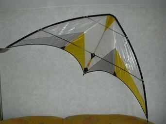 Keywords: Amazing02.jpg en Indoor Kite Amazing Manufacturer Level ONE de Indoor Lenkdrachen Amazing Hersteller Level ONE Selbst aufgenommenes Foto Ewald Brandner 2004 Kite festival Fanø 2005 Delta kites Stunt kites