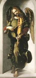 | Keywords: Ambrogio de Predis - Angel in green with a vielle.jpg Angel with violin / Panels from the S Francesco Altarpiece Milan http //web archive org/web/20030227175759/http //cgfa sunsite dk/v/p-assvinc1 htm 1490 1499 oil poplar size cm 117 2 60 8 Institution National Gallery London not on display PD-old-100 DEFAULTSORT An Angel in Green with a Vielle; National Gallery London; 1490 1499 Files uploaded by Shakko from various sources Violins in paintings Angels with string instruments Standing angels Virgin of the Rocks National Gallery Women looking down in art Green clothing in art angel Leonardeschi 1490s paintings in the United Kingdom 1490s paintings from Italy Paintings of musical instruments Music-making angels 15th-century paintings of angels Vielle 15th-century oil on panel paintings Angels on the ground Curly hair in art female Giovanni Ambrogio de Predis |