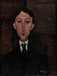 | Keywords: Amedeo Modigliani - Buste de Manuel Humbert.jpg Artwork Creator Amedeo Modigliani Manuel Humbert 1916 oil canvas cm 66 51 4 accession number object history Libaude Paris Bignou Gallery New York by 1939 and until at least 1943 Zeppo Marx Los Angeles James McHugh Los Angeles Mr and Mrs William Wyler Los Angeles Acquired from the above in 1951 credit line Modigliani lower right signature and Manuello upper right caption http //www sothebys com/en/auctions/ecatalogue/2005/impressionist-and-modern-art-part-one-n08125/lot 15 html Sotheby's New York 2005 11 02 lot 15 PD-old-auto 1920 Paintings of men by Amedeo Modigliani Front view portrait paintings of males 1916 paintings Images from Sotheby's |
