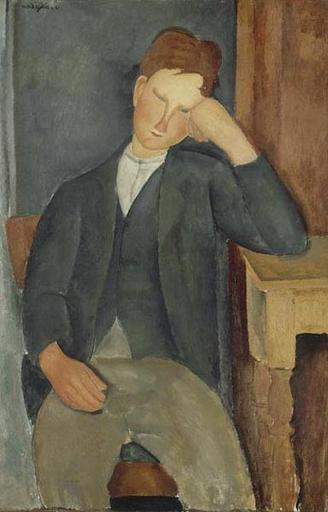 | Keywords: Amedeo Modigliani - Le Jeune Apprenti.jpg Artwork Q3794239 Creator Amedeo Modigliani 1918-1919 Oil on canvas cm 100 65 Institution Musée de l'Orangerie accession number object history credit line Modigliani signature upper left Yorck http //mail wikipedia org/pipermail/wikide-l/2005-April/012195 html <gallery>Amedeo Modigliani - The Young Apprentice - Google Art Project jpg</gallery> PD-old-70 PD-Art-YorckProject DEFAULTSORT 1918-1919; unknown man Le jeune apprenti - Amadeo Modigliani - Musée de l-orangerie - RF 1963 71 |