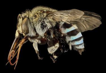 | Keywords: bug bugs bee bees pollinator pollinators animal animals animalia arthropod arthropods arthropoda insect insects insecta hymenoptera aculeata anthophila apoidea apidae apinae india batra amegilla taxonomy:genus=amegilla canon zerene zerene stacker zerenestacker stackshot blue-banded bee bluebandedbee blue-banded bluebanded droege biml usgs usgsbiml tongue black background surreal India = An unknown species of Amegila collected by Suzanne Batra. The fluorescent hairs banding the abdomen of this old-world species are what give the group the general name of blue-banded bees. 251 species known Canon Mark II 5D, Zerene Stacker, Stackshot Sled, 65mm Canon MP-E 1-5X macro lens, Twin Macro Flash in Styrofoam Cooler, F5.0, ISO 100, Shutter Speed 200, link to a .pdf of our set up is located in our profile India = An unknown species of Amegila collected by Suzanne Batra. The fluorescent hairs banding the abdomen of this old-world species are what give the group the general name of blue-banded bees. 251 species known Canon Mark II 5D, Zerene Stacker, Stackshot Sled, 65mm Canon MP-E 1-5X macro lens, Twin Macro Flash in Styrofoam Cooler, F5.0, ISO 100, Shutter Speed 200, link to a .pdf of our set up is located in our profile |